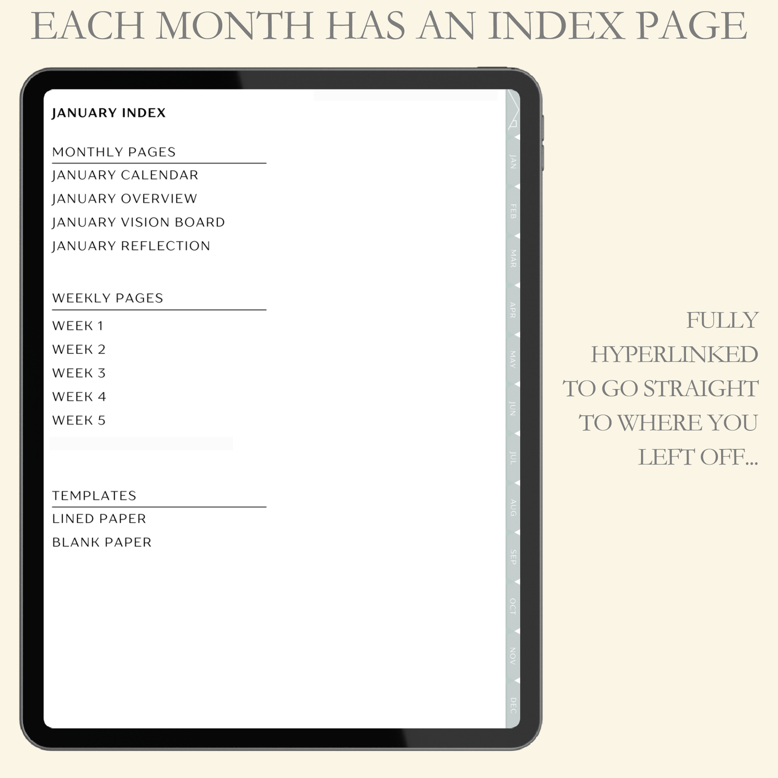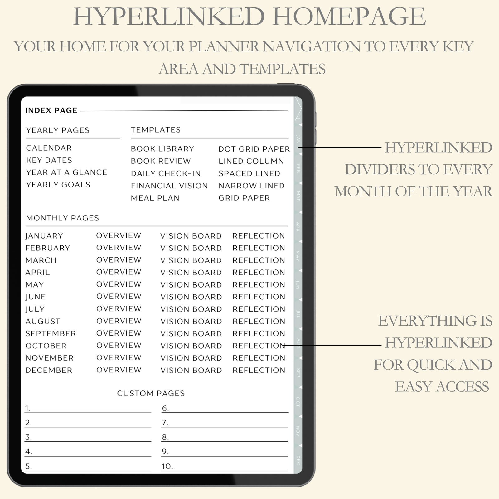 ✔ Fully Hyperlinked Throughout – Seamlessly navigate your planner with just a tap