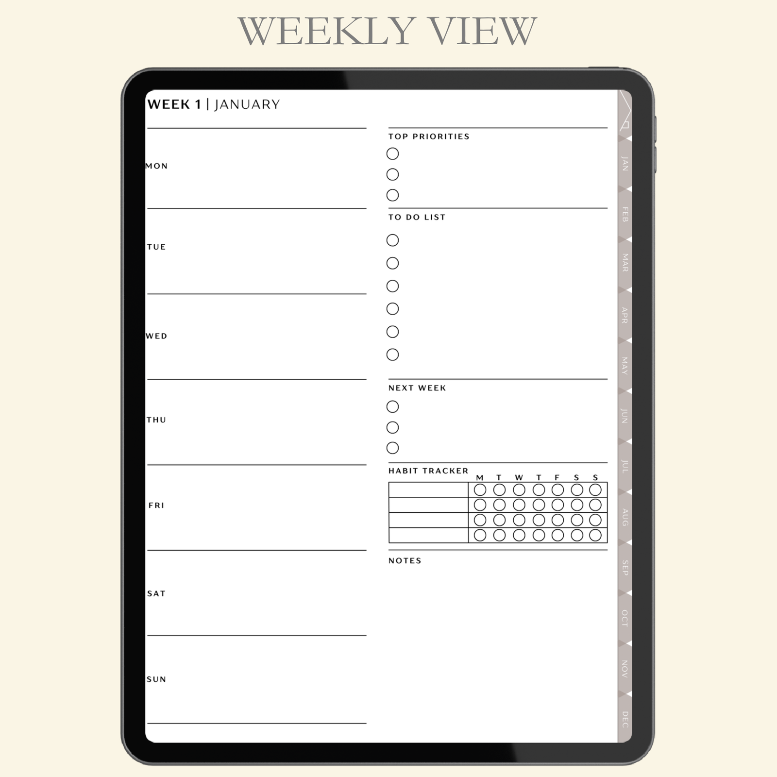 Your planner will be available immediately after purchase. Simply download, import into your favourite note-taking app, and start planning right away.